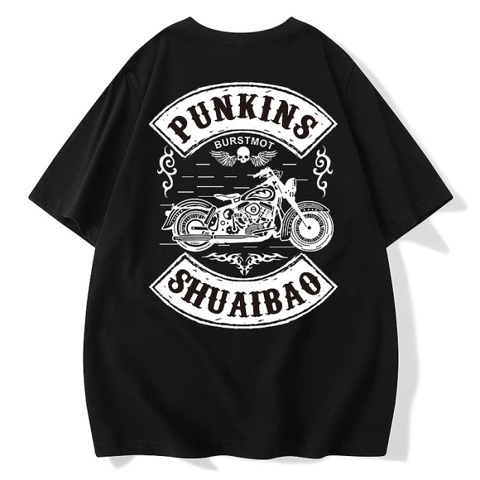 日系潮牌美式復古國潮骷髏頭短袖西海岸街頭龐克摩托機車潮男T恤