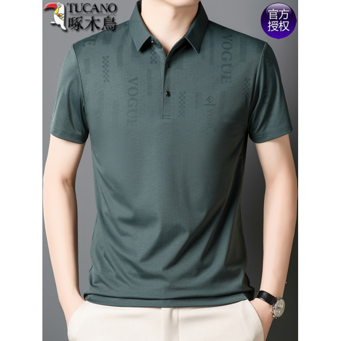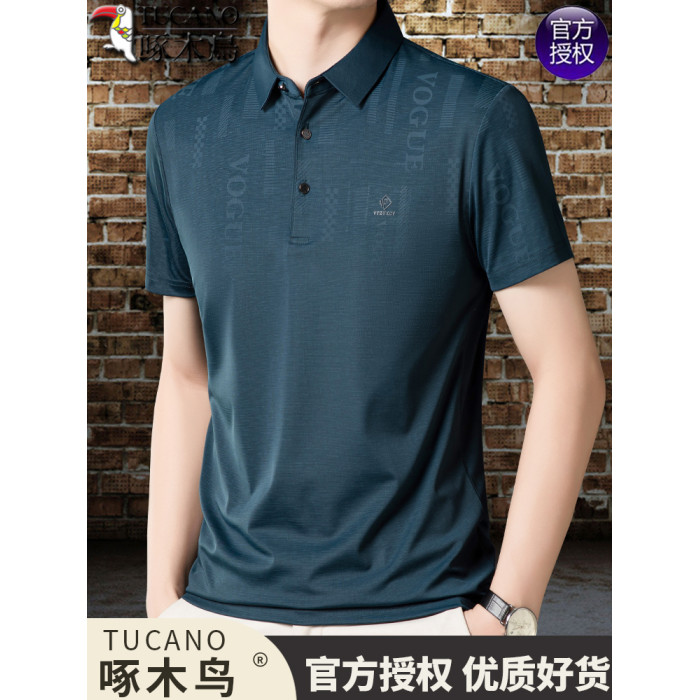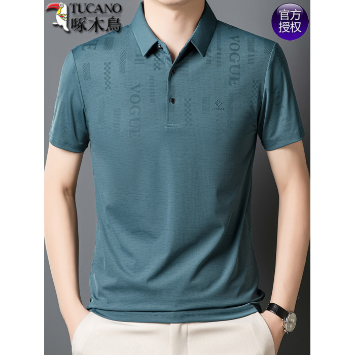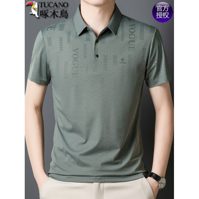 啄木鳥夏季短袖男t恤2025新款字母印花Polo衫男士冰絲涼感上衣服