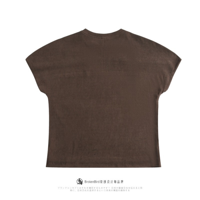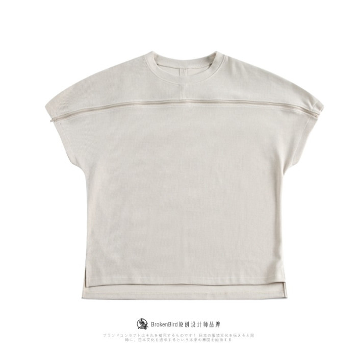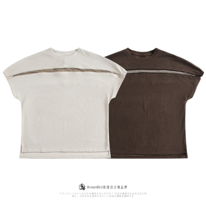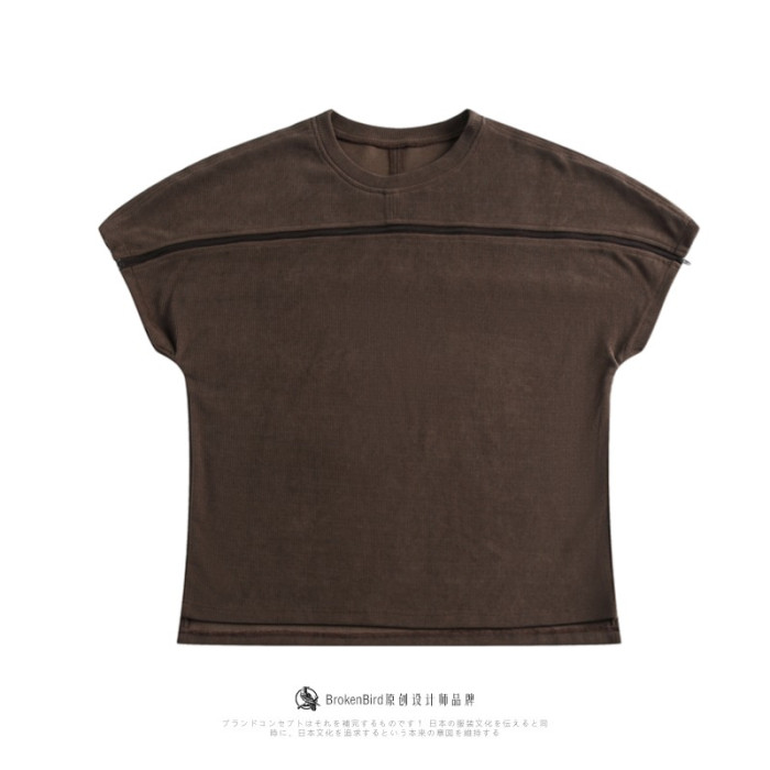 美式復古純色拼接拉鍊設計感短袖男t恤夏季2025新款小衆肌理上衣