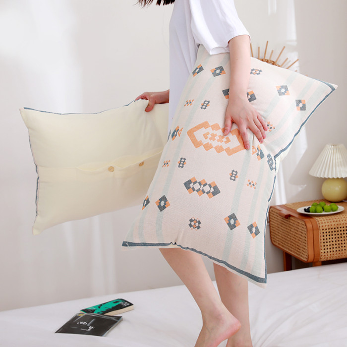 純棉枕套三層紗布加厚成人枕頭套全棉單人枕芯套柔軟舒適透氣日式