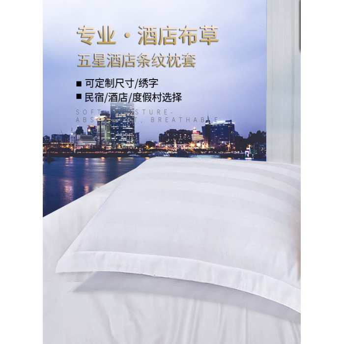 床上用品賓館酒店親膚枕套滌棉加密條紋枕頭套旅館信封式枕芯套