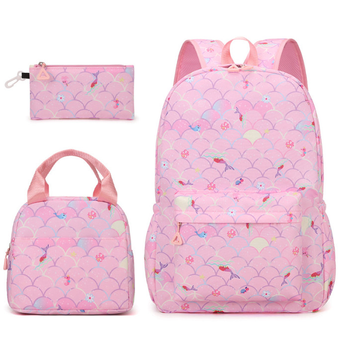 2024年新款小學生書包女雙肩包三件套時尚印花潮流公主風
