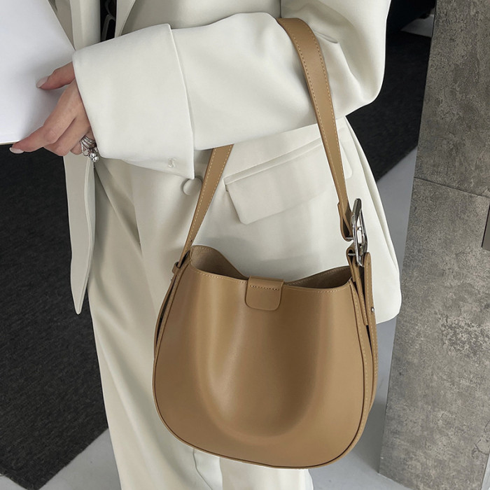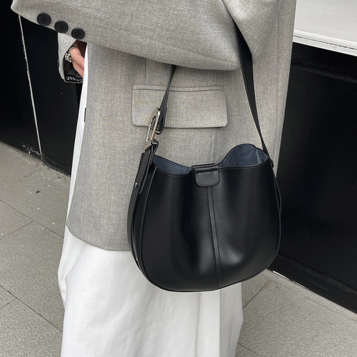 新款水桶包女2025牛皮馬鞍包單肩斜後背包真皮女包高級感通勤腋下包