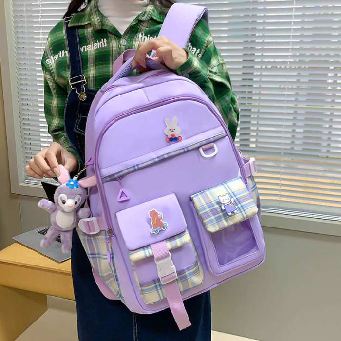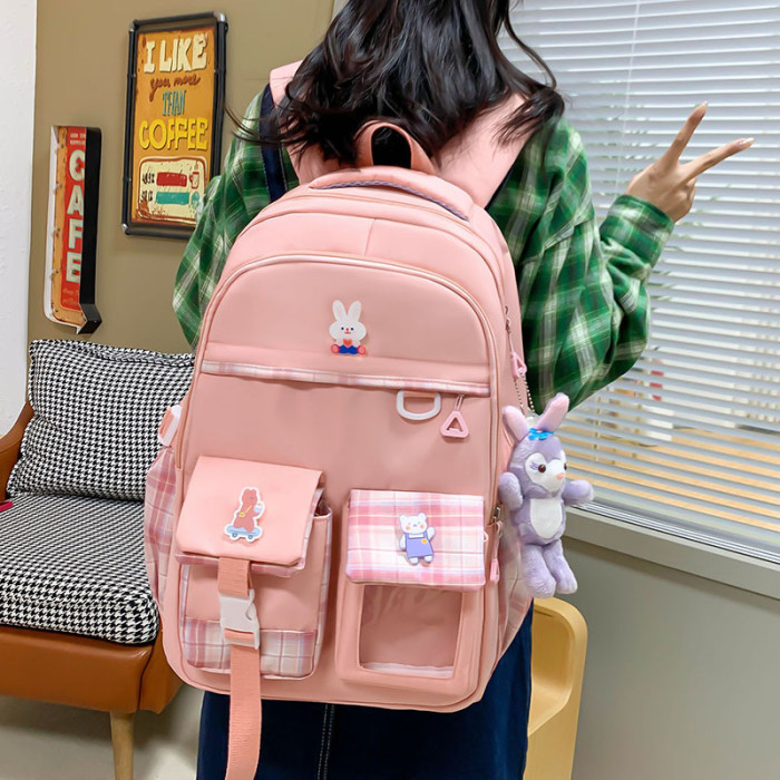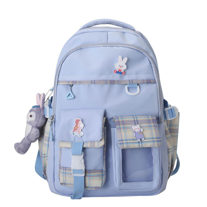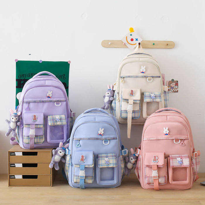 新款大容量雙肩包女時尚格子小學生書包輕便休閒百搭上課後背包