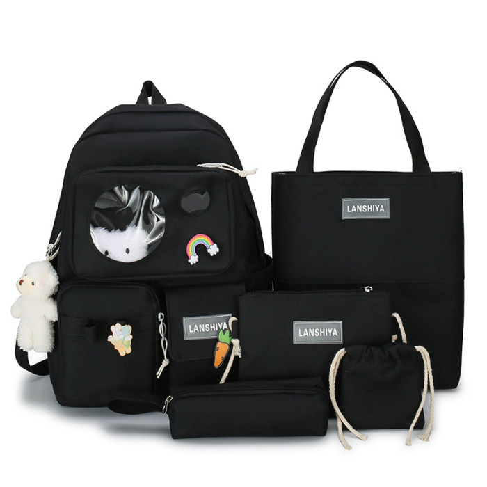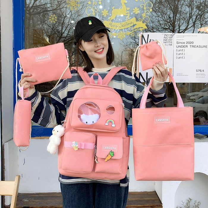 新款可愛韓版ins書包女初高中小學生雙肩包森系五件套手提補課袋