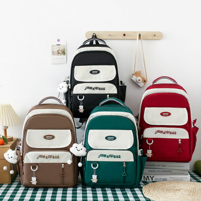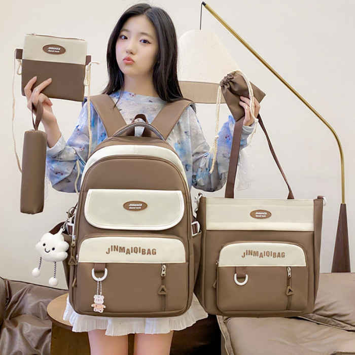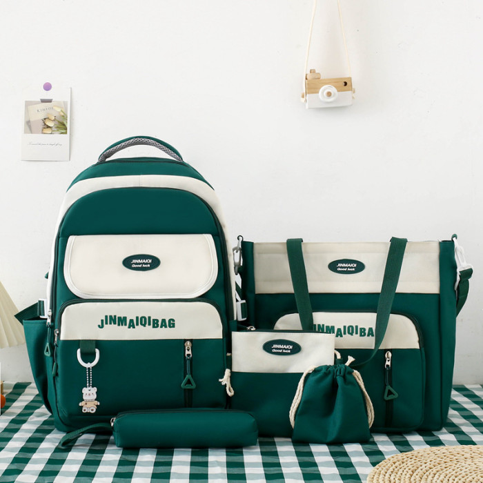 韓版新款學生書包女日系ins五件套百搭雙肩包3-6年級初中上課後背包