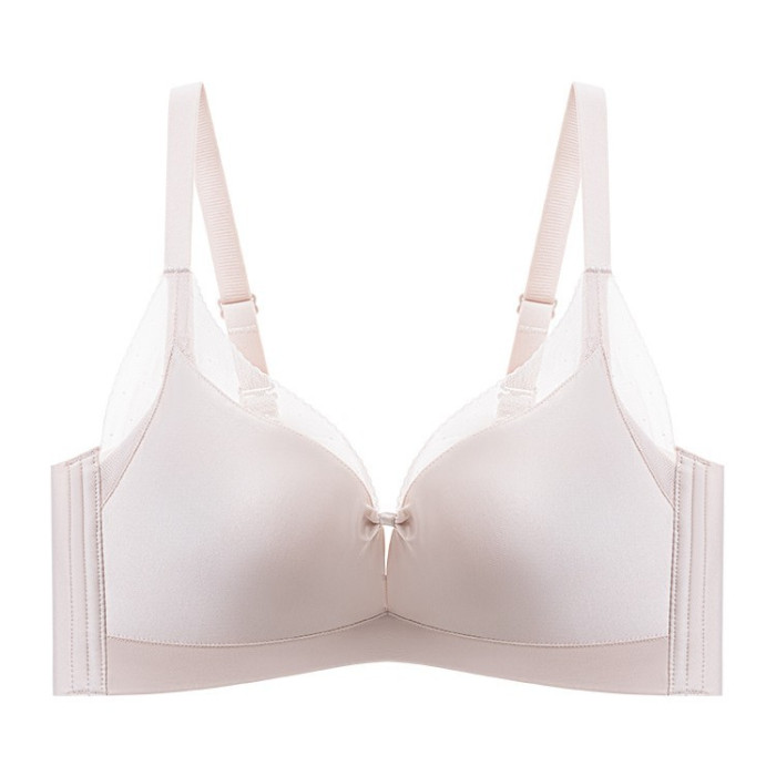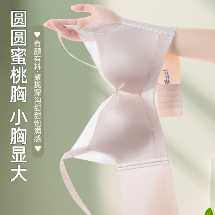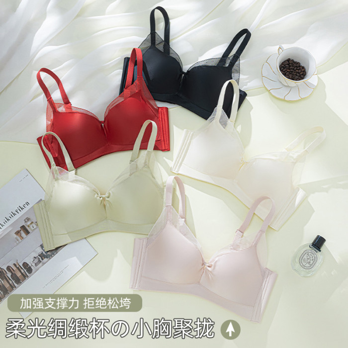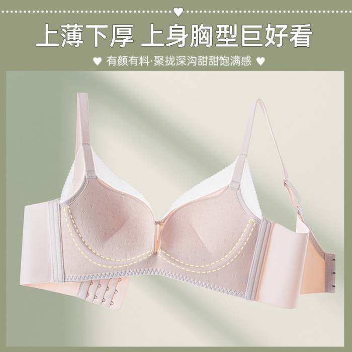 無鋼圈小胸聚攏舒適透氣中厚杯性感鏤空文胸無痕純色光面內衣美背