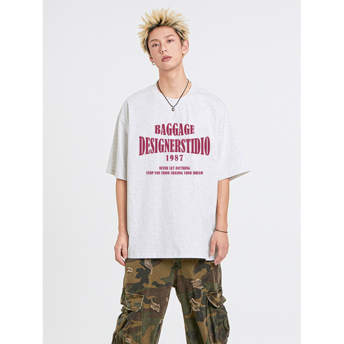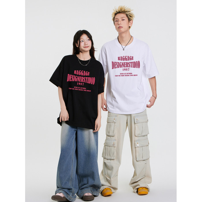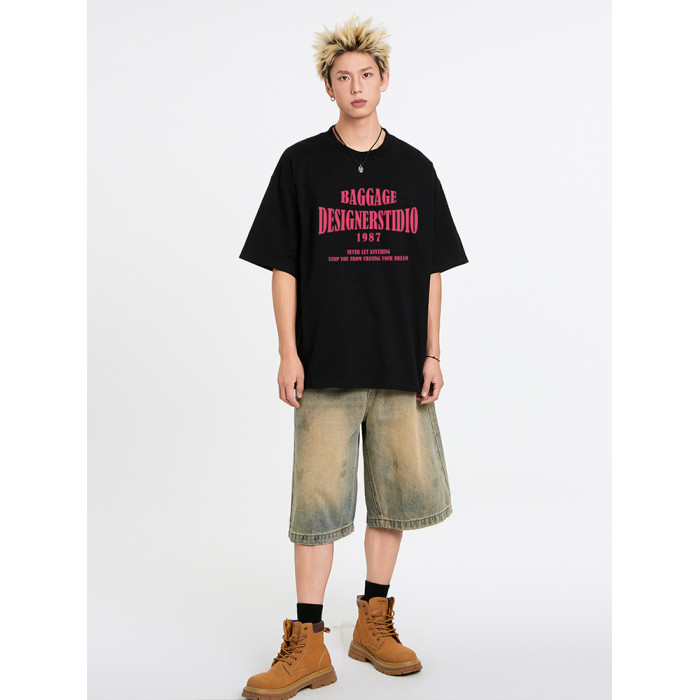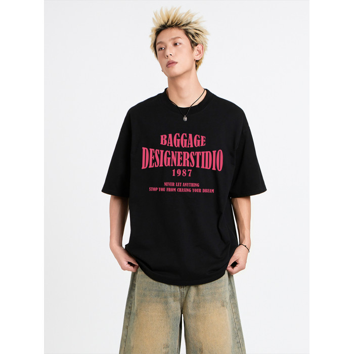 WAINOT潮牌重磅字母印花黑色短袖男T恤痞帥寬松大碼上衣2025新款