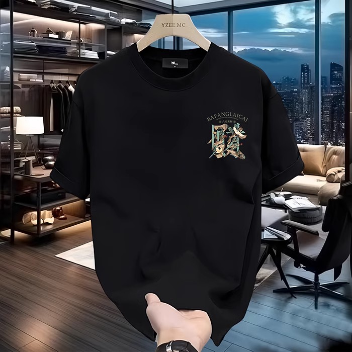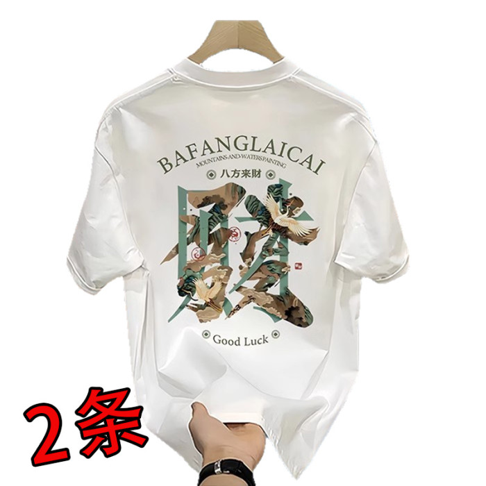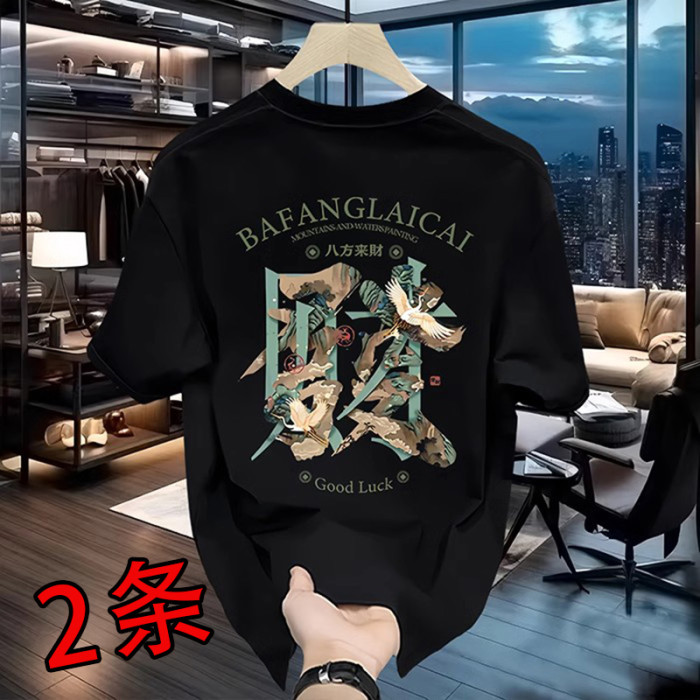 夏季國潮純棉印花短袖男T恤創意新款潮牌休閒百搭寬松男裝上衣服