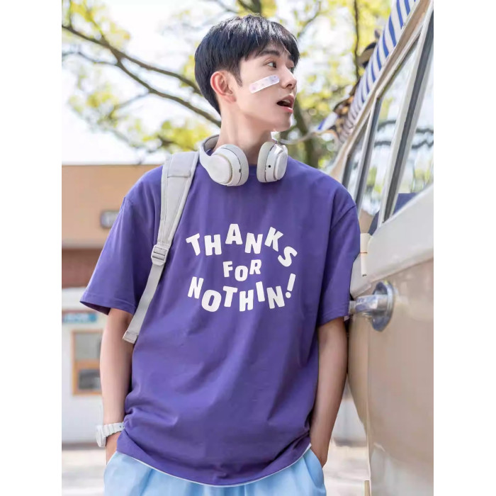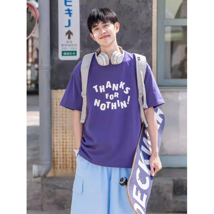 休閒圓領短袖男t恤字母印花夏天潮男INS穿搭情侶款純棉寬松上衣T