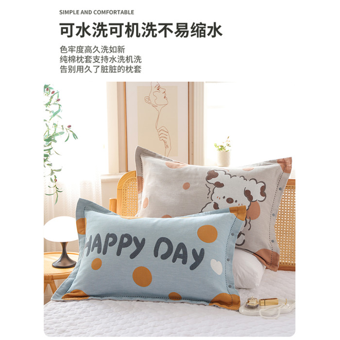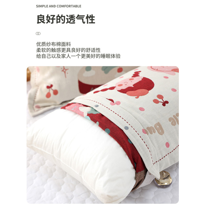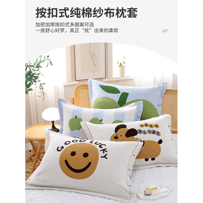 按釦純棉紗布枕套一對裝四季通用成人枕頭套家用加厚款全棉內膽套