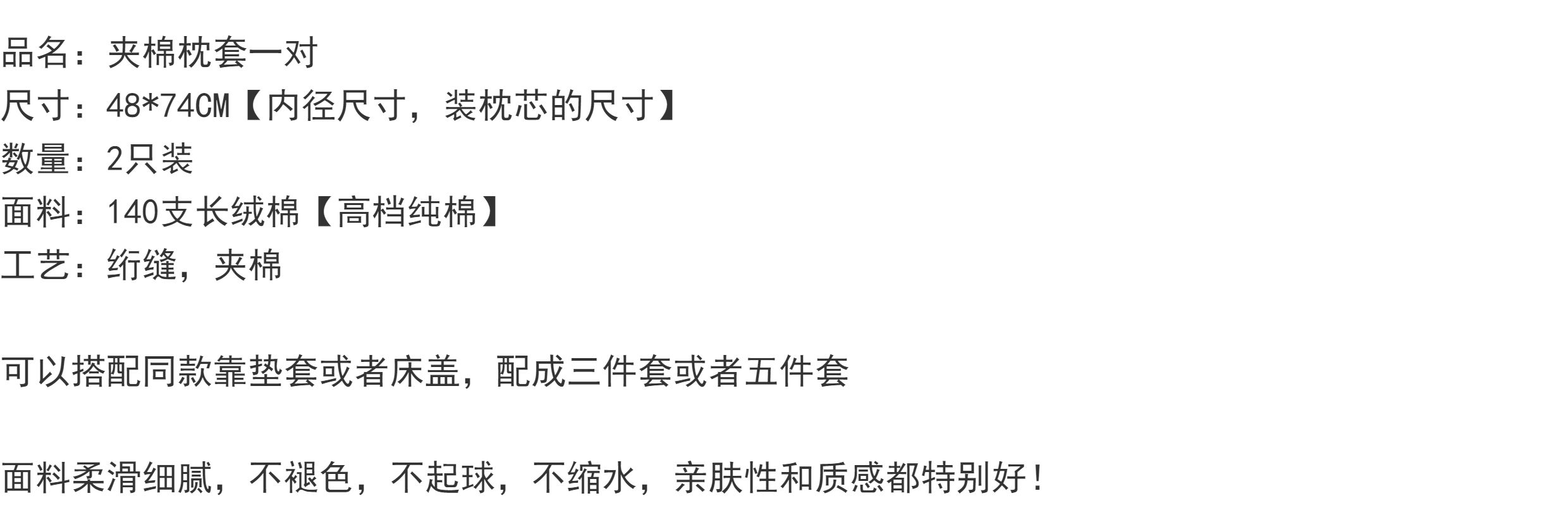 140支長絨棉枕套加厚純棉純色枕頭皮絎縫夾棉48*74一對裝床品簡約