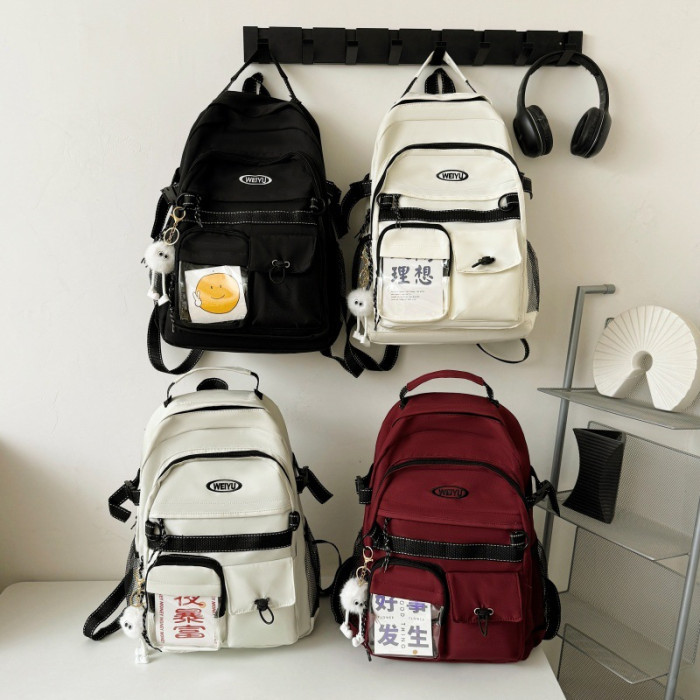 初高中大容量上課書包女純色簡約休閒旅行後背包時尚帆布百搭雙肩包
