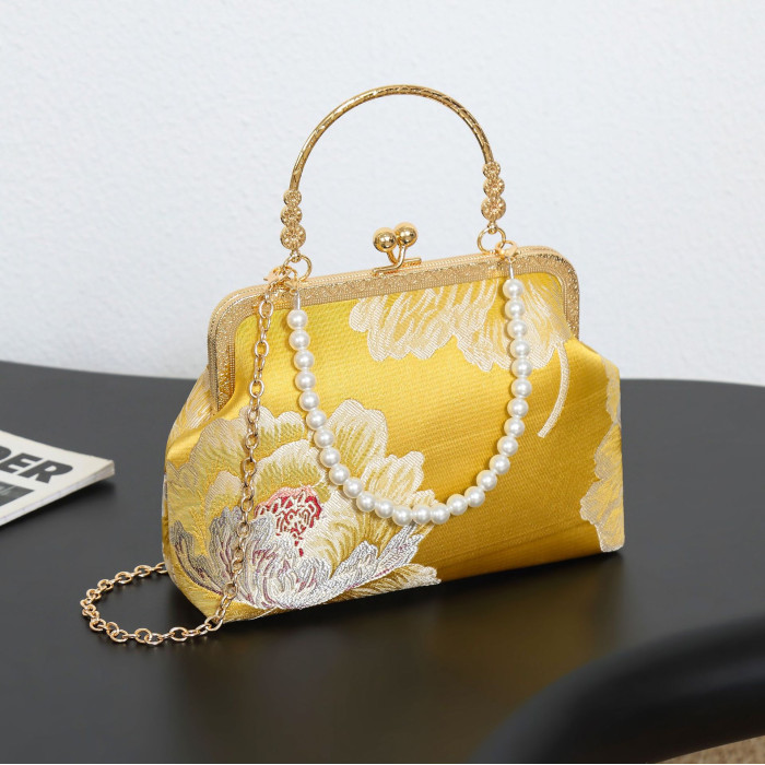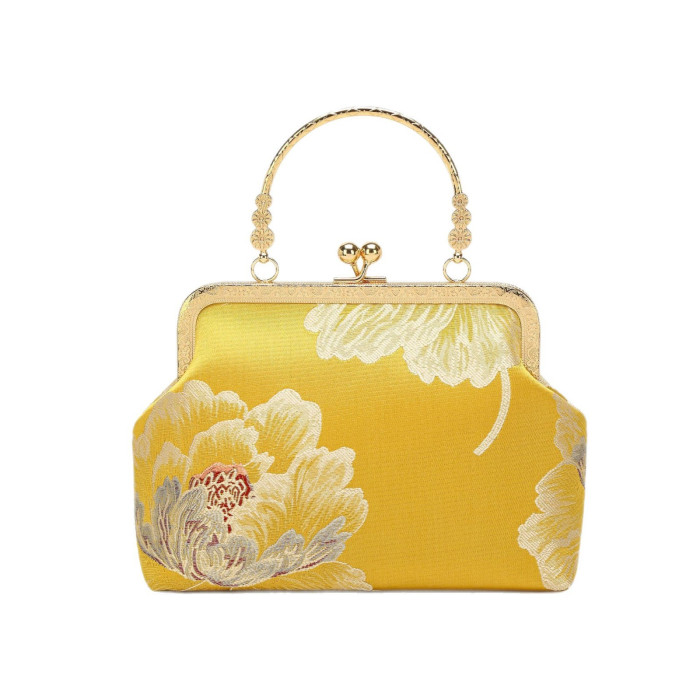 女士手拿包新中式國風刺綉斜後背包復古氣質手提包搭配馬面裙的女包