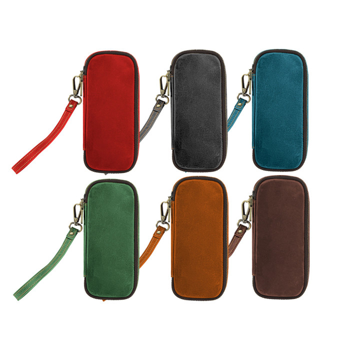 復古菸鬭菸絲收納盒拉鍊旅行可攜式手提菸鬭包手腕菸具收納包真皮