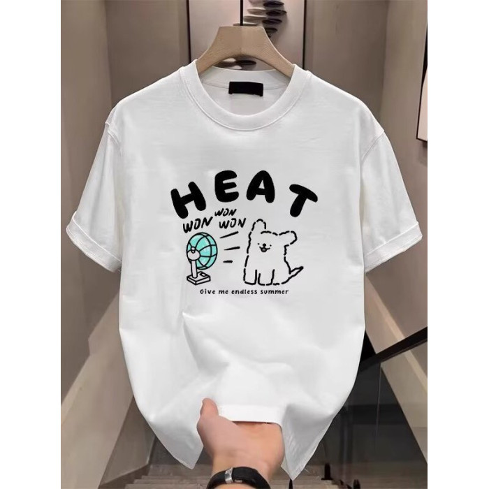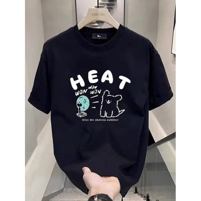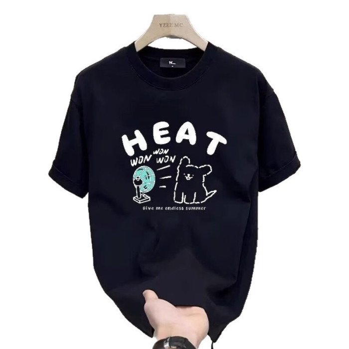 重磅純棉趣味創意印花短袖男T恤夏季新款寬松大碼圓領五分袖上衣