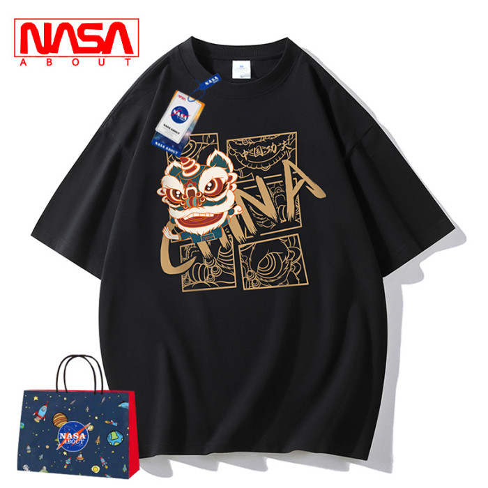 NASA重磅男t恤短袖2023寬松夏季白色美式復古純棉休閒男士半袖潮