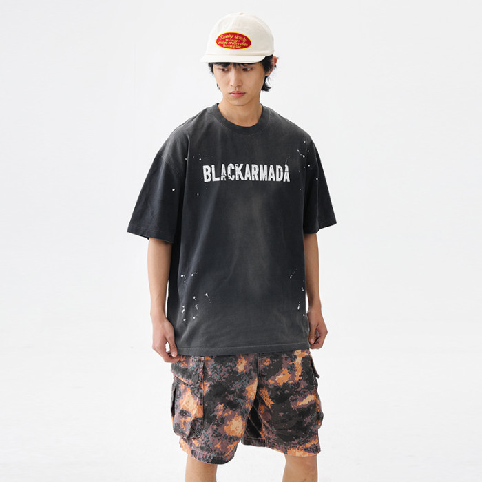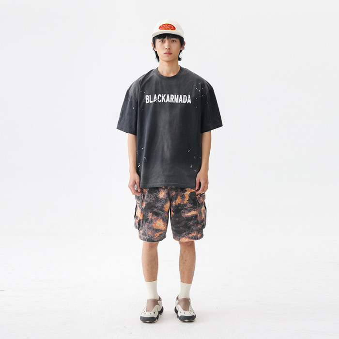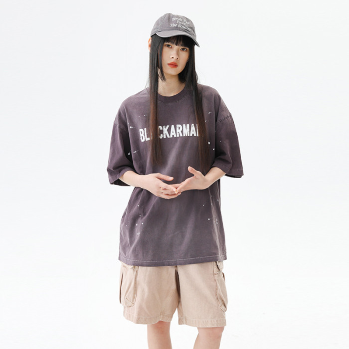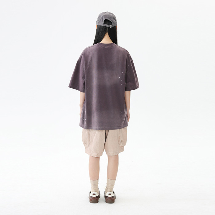潮牌原創2025春夏季新款純棉洗褪寬松休閒圓領短袖男T恤情侶上衣
