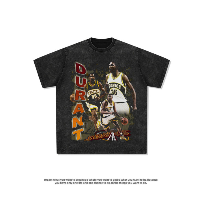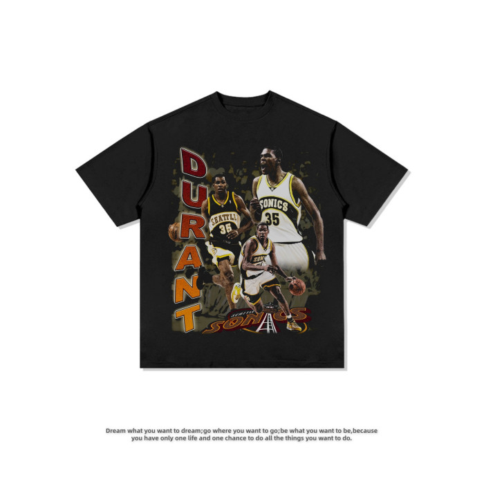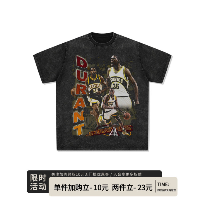 杜蘭特35號 KD TEE生涯版籃球男t恤美式復古數碼直噴純棉嘻哈短袖