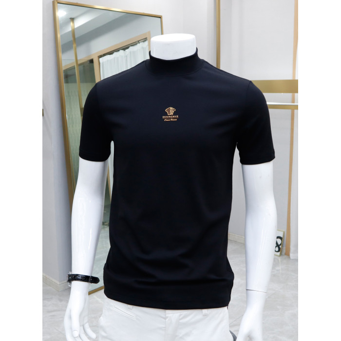 半高領短袖男T恤2025新款純棉高級感痞帥中領半袖潮牌潮流上衣