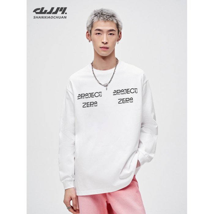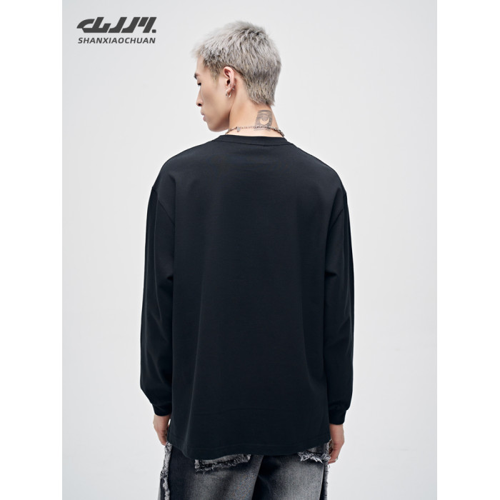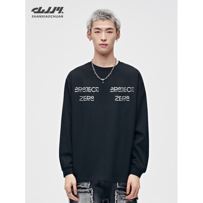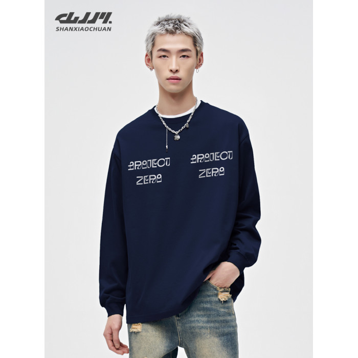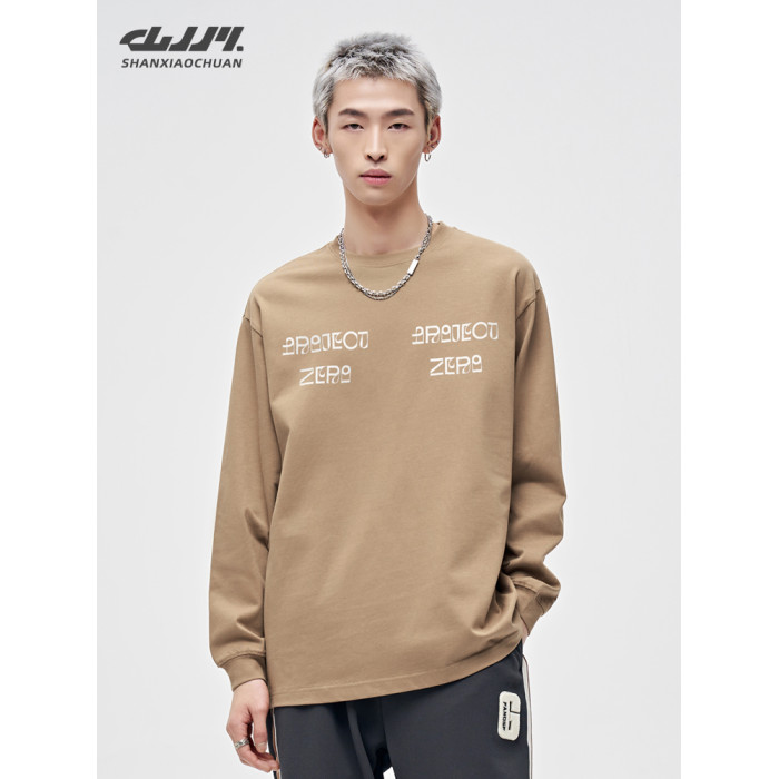 山小川長袖男t恤2025新款純棉秋冬款字母圓領上衣男式內搭打底衫
