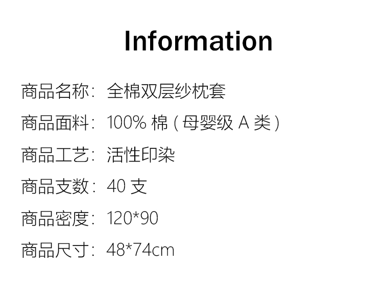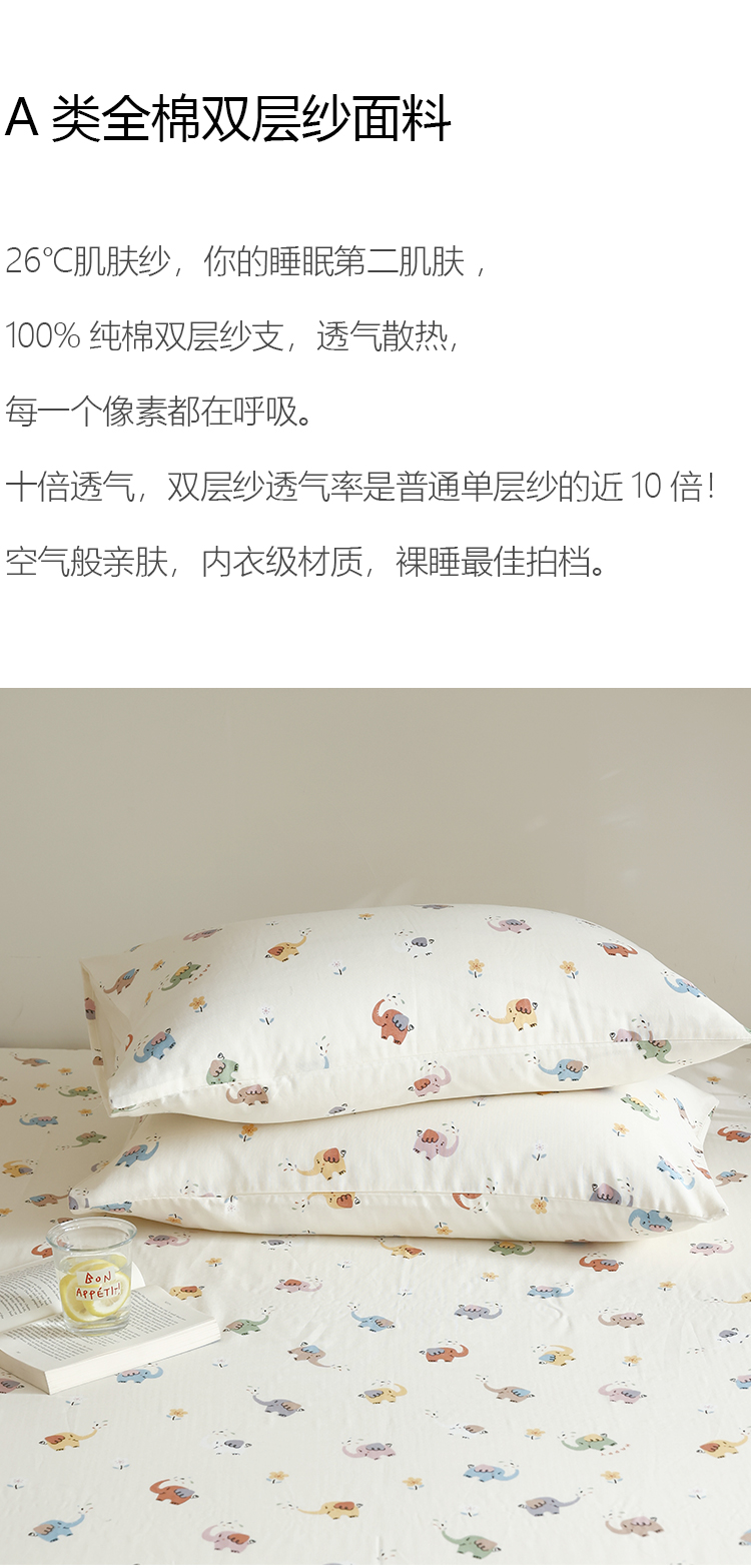 A類透氣全棉雙層紗枕套一對2衹裝 柔軟透氣純棉紗布枕頭套48x74cm