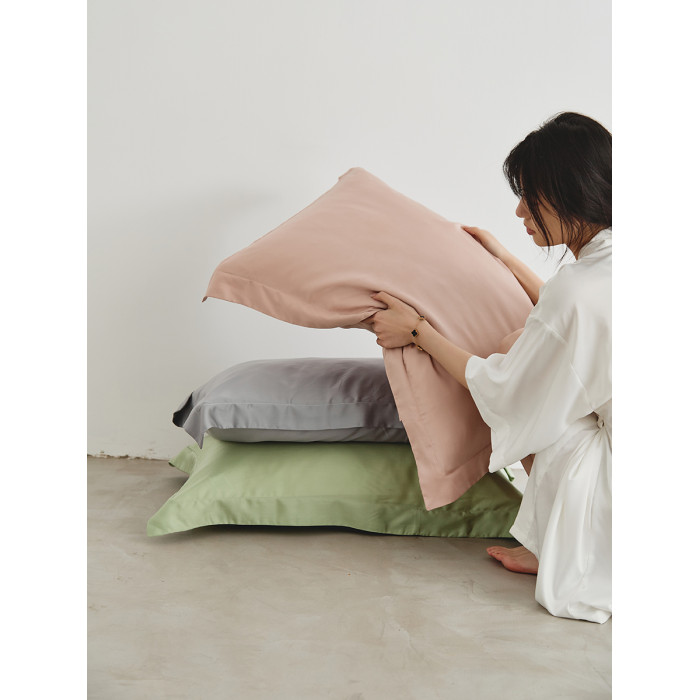 60S蘭精天絲枕套單人一對裝 絲滑寬邊壓線枕頭套高級感涼感夏季