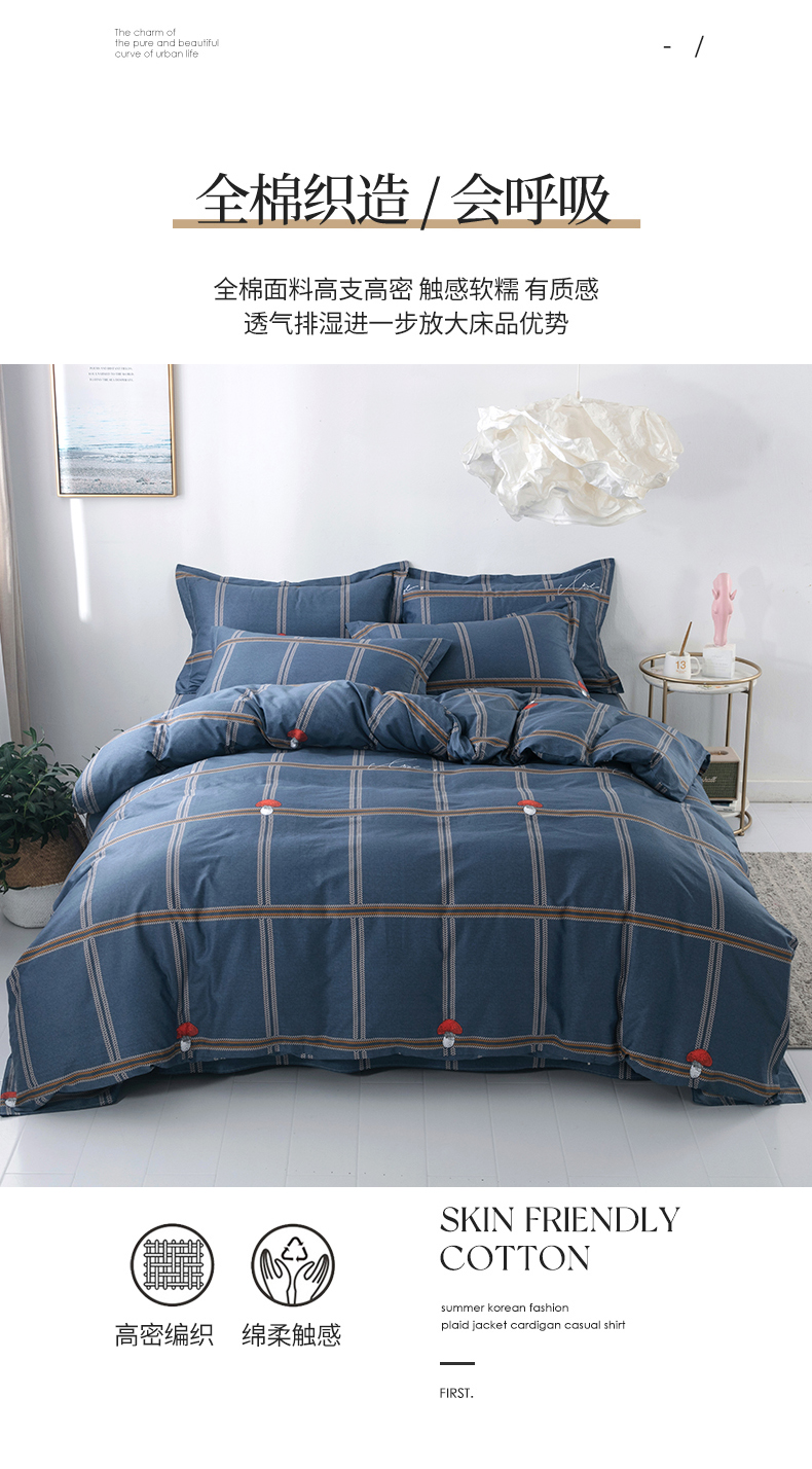 北歐全棉被套單件純棉被罩男款被單150200230宿舍三件套春夏4件套