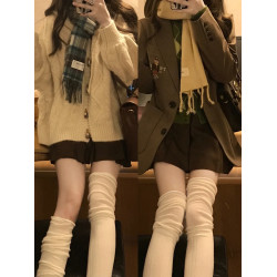 日系小腿靴襪春秋長筒美拉德堆堆襪JK純色白色堆堆襪顯瘦配騎士靴