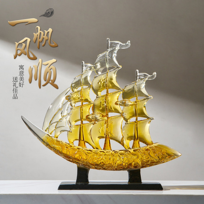 一帆風順擺件-茶黃色透明