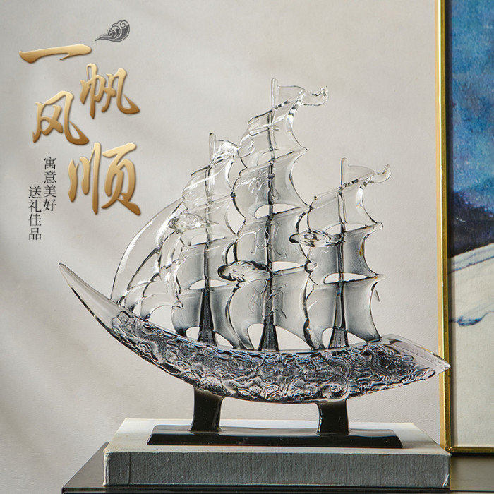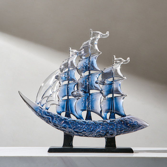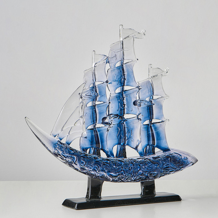 帆風順擺件-透明寶藍色