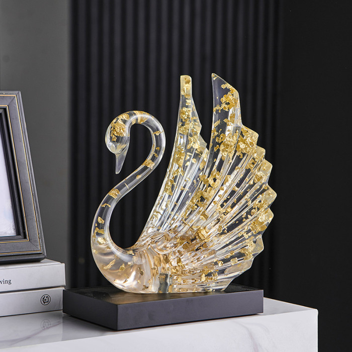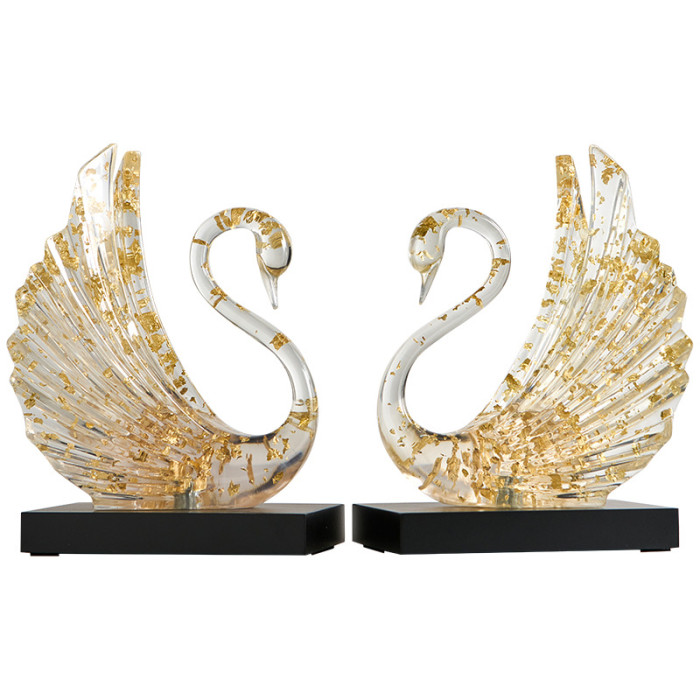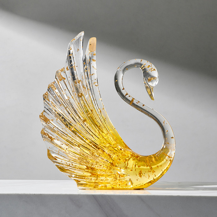 透明天鵞擺件-金箔