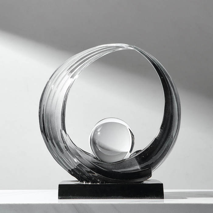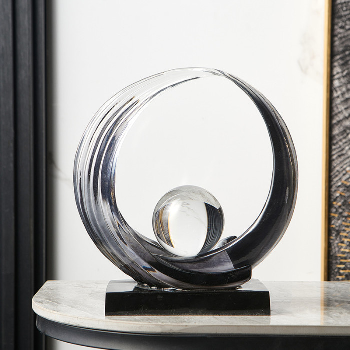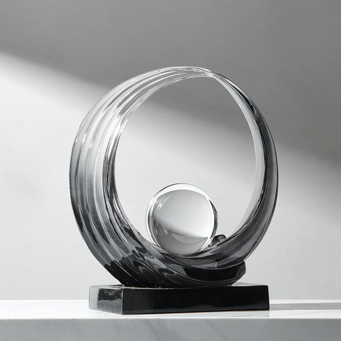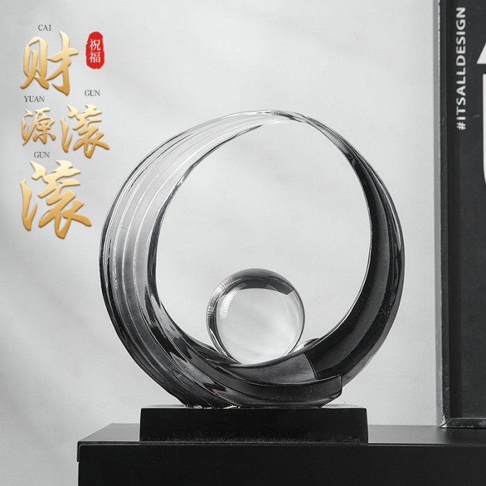 顔色 透明樹脂財源滾滾擺件-菸灰色