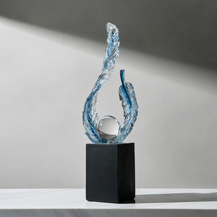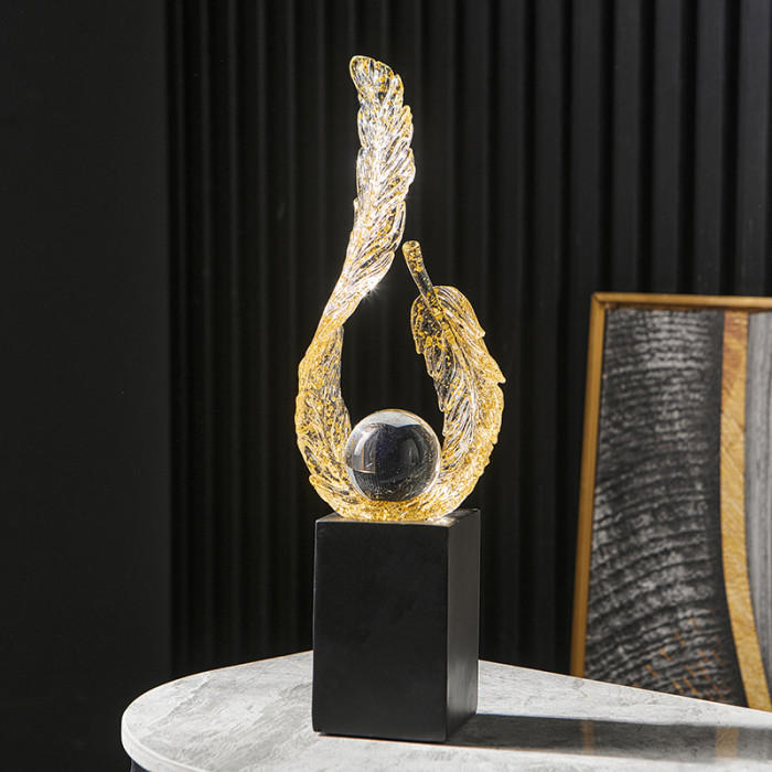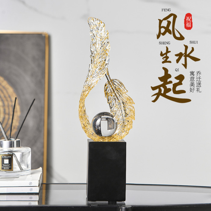 輕奢藝術羽毛戯珠桌面擺件辦公室酒櫃電視櫃裝飾喬遷新居開業禮品