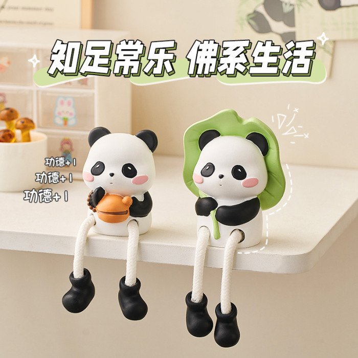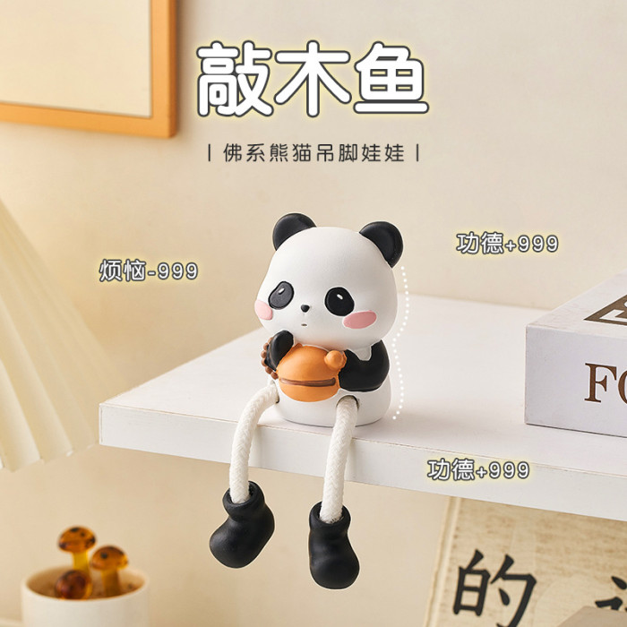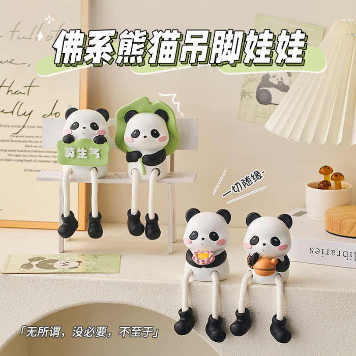 彿系熊貓吊腳娃娃桌面擺件可愛玄關客廳臥室裝飾禮物家裝家居用品