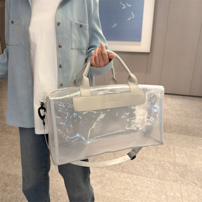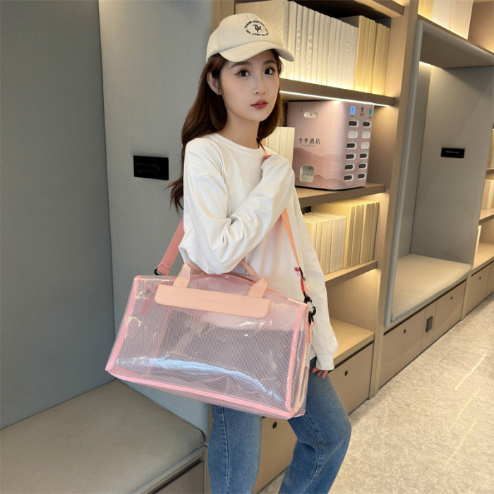 沙灘旅行包大容量果凍透明單肩斜後背包短途外出健身遊泳時尚手提包