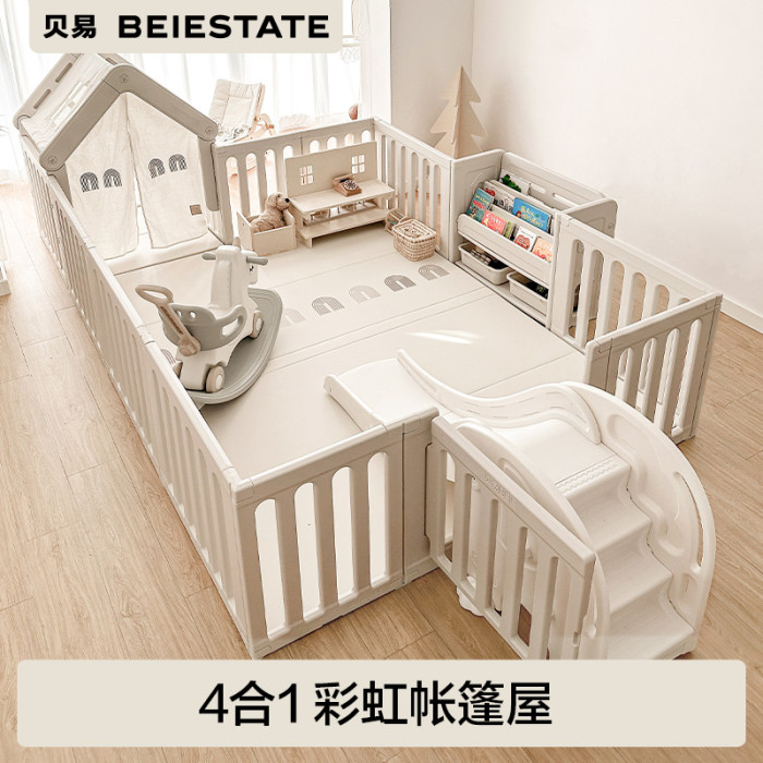 貝易彩虹遊戯圍欄寶寶爬爬墊小房子防護欄兒童地上嬰兒爬行墊室內