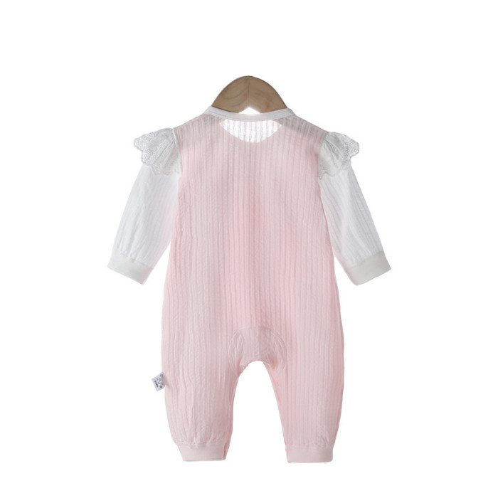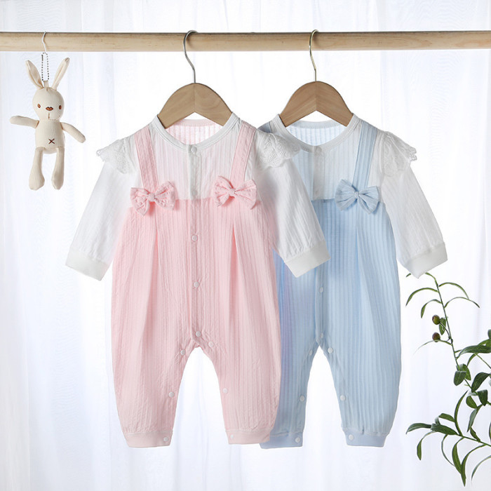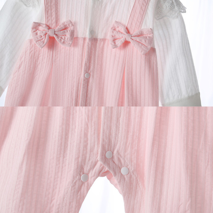 甜美雙蝴蝶結寶寶背帶式爬爬衣  長爬棉質長袖秋季新生兒連體衣