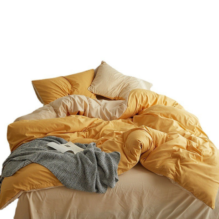 ins風純色雙拼水洗棉床上四件套學生宿舍床單被套床笠三3件套