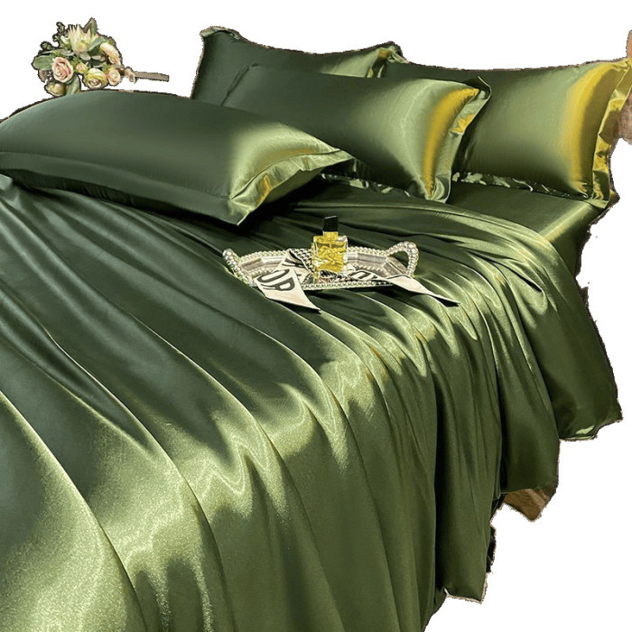 夏季純色真絲四件套床單四件套被套絲綢緞床笠冰絲床上用品