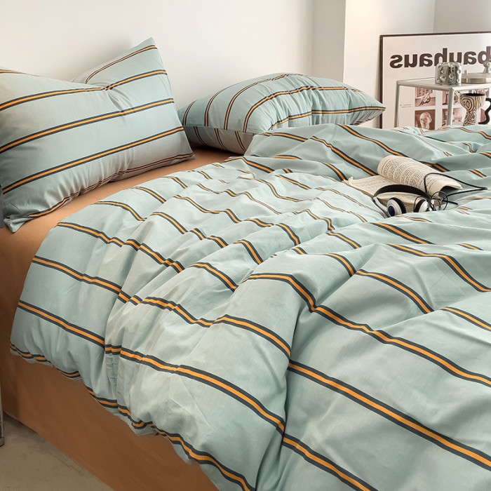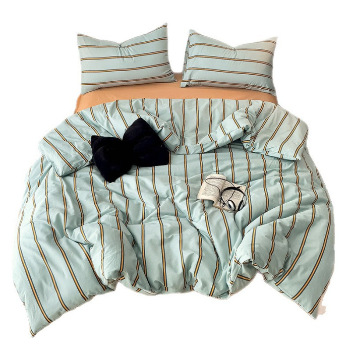 ins風簡約條紋全棉枕套床上四件套單品四季款純棉斜紋布被套3件套