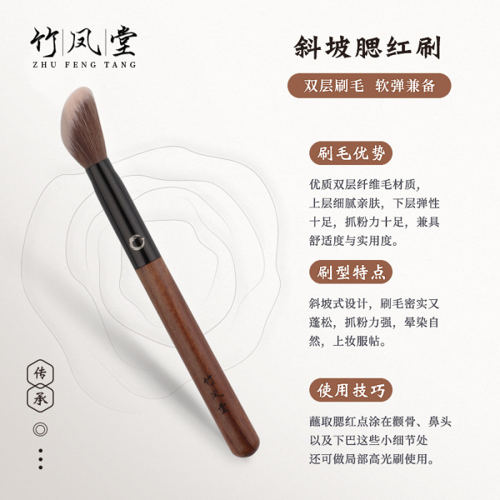 竹鳳堂化妝刷雛鳳F819斜坡腮紅刷修容刷高光刷散粉刷一支裝竹風堂