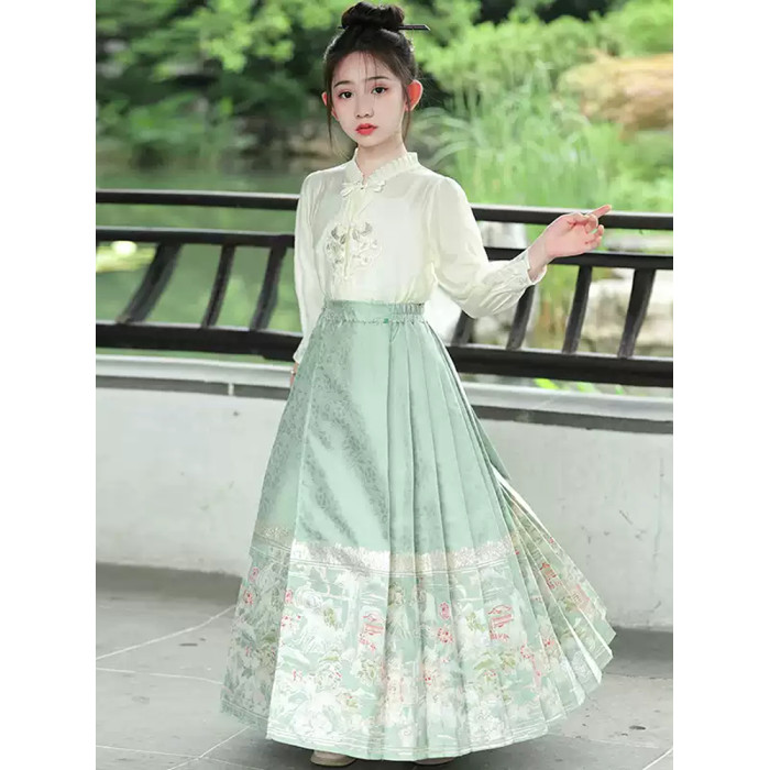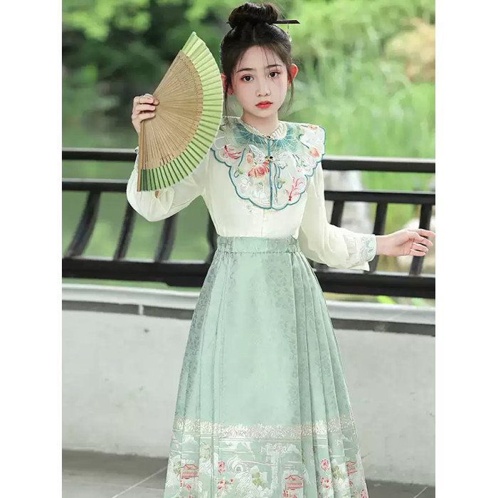 米白上衣+綠色織金馬面裙