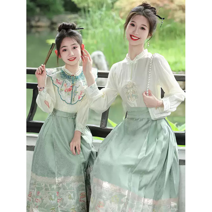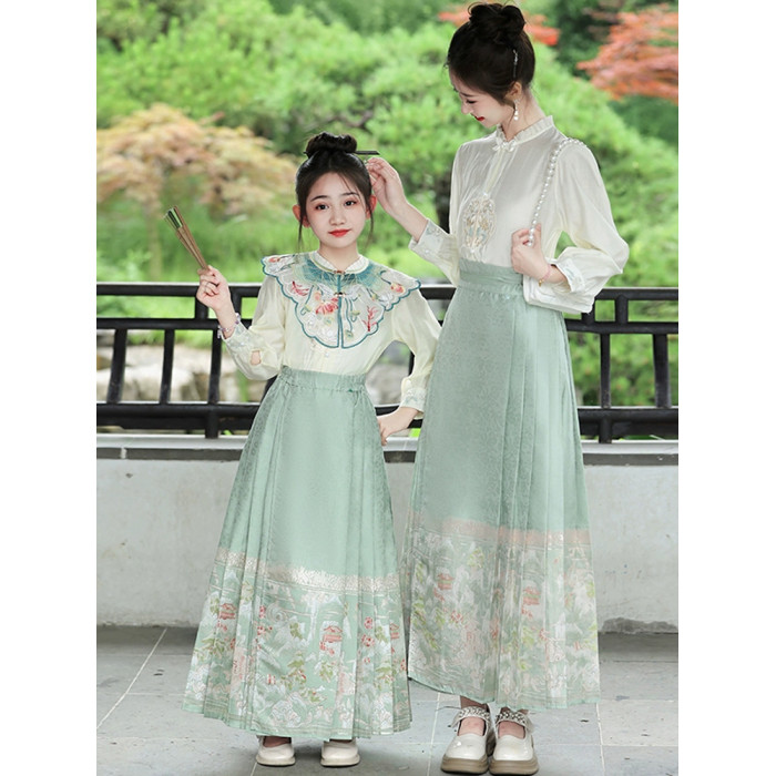 女童織金馬面裙套裝母女親子裝2025新款春秋裝古風漢服新中式禮服