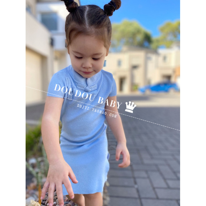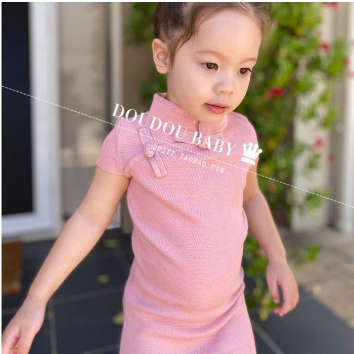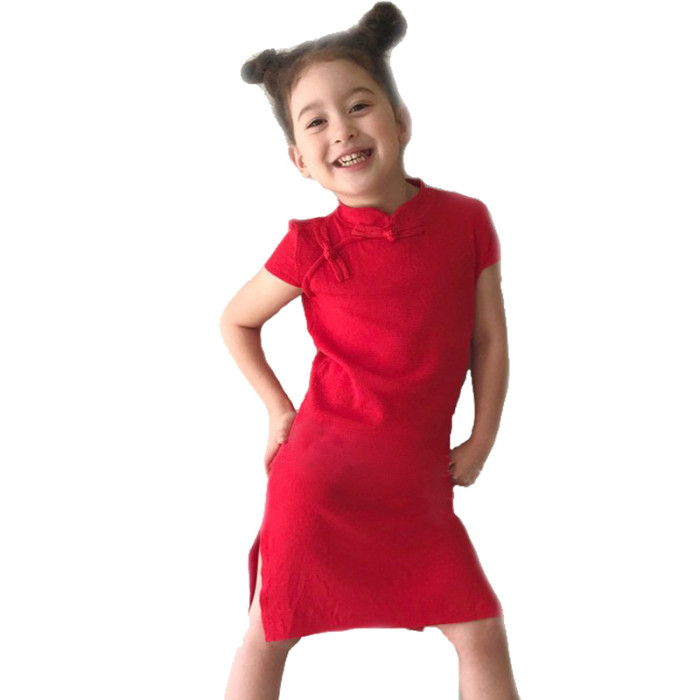 風兒童旗袍夏季女童冰絲復古連衣裙2025新款抓周嵗短袖親子裝