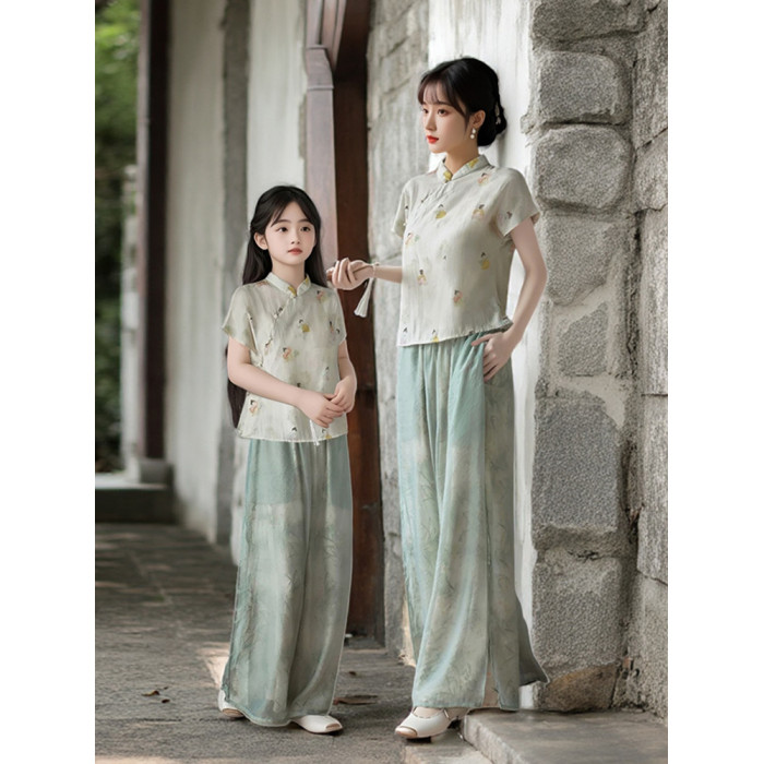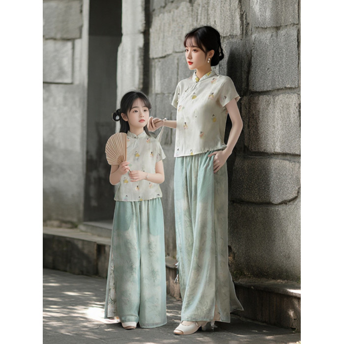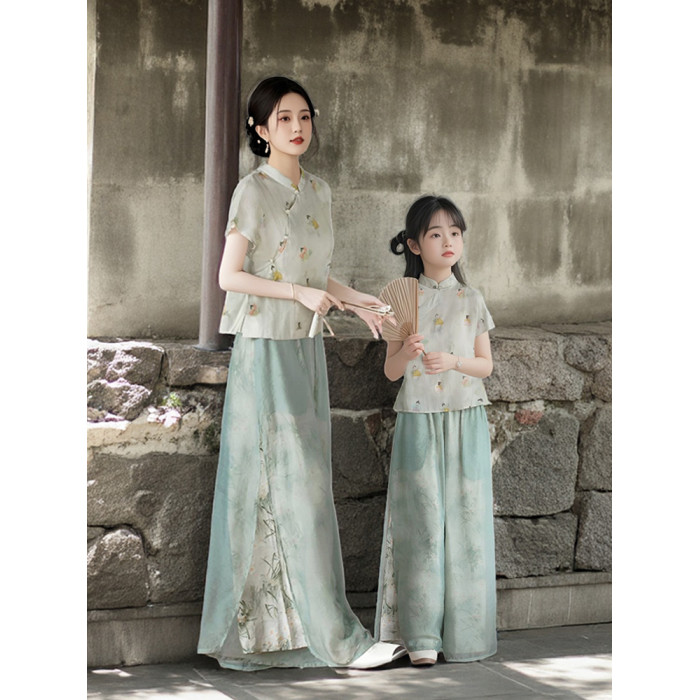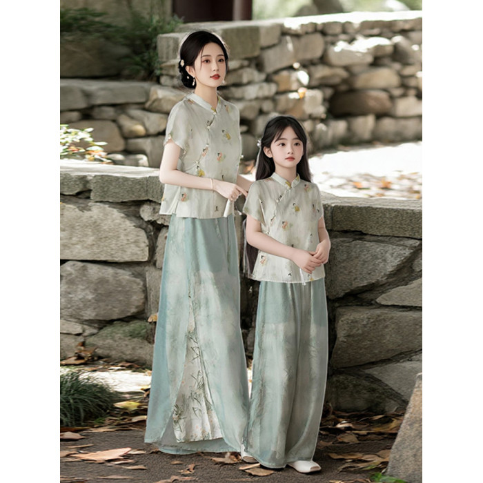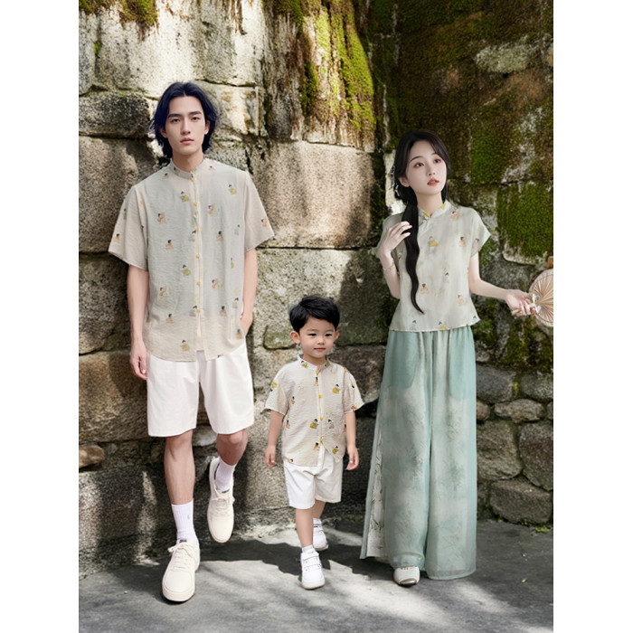 新中式親子裝夏季2025新款一家三口民國風母子母女裝旗袍漢服唐裝