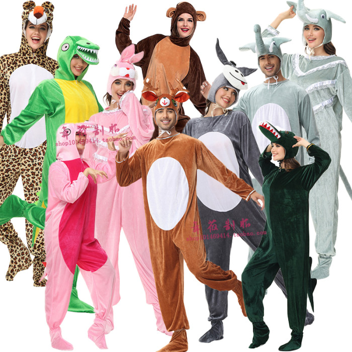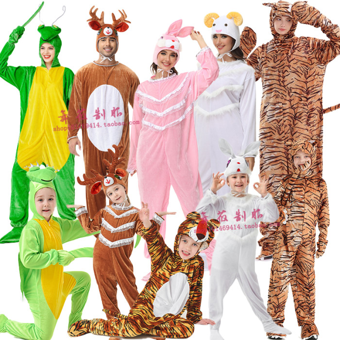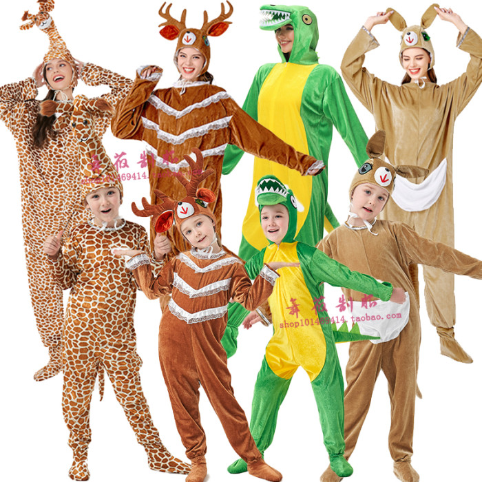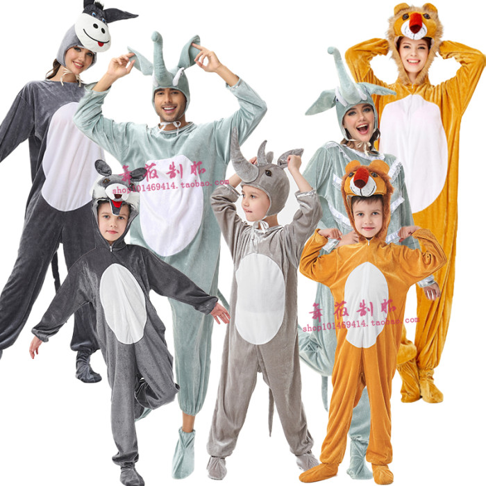 六一兒童成人動物連體衣老虎豹子袋鼠兔子小毛驢馴鹿長頸鹿cos服