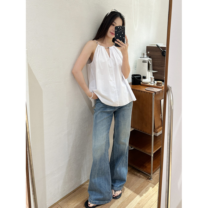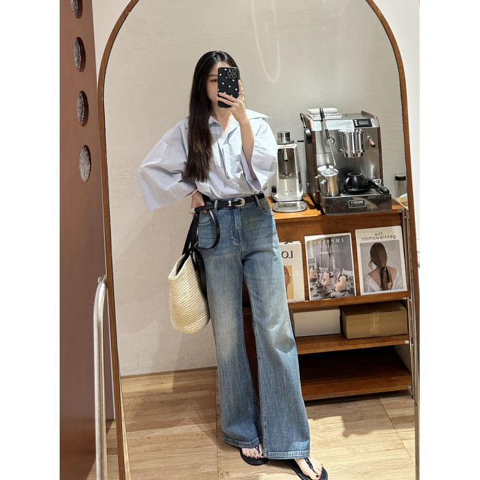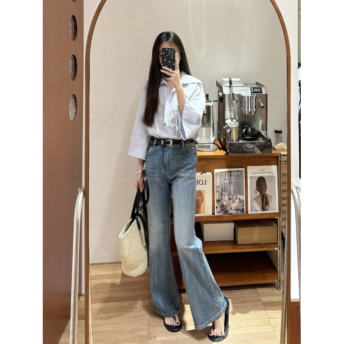 親媽~YII BARO女牛仔褲女2025夏季新款復古微喇褲窄版直筒褲