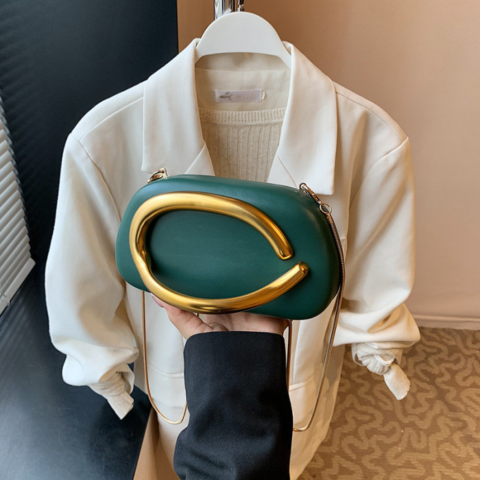 歐美潮流經典圓盒手抓晚宴包迷你小包復古金屬提把鏈子單肩斜後背包