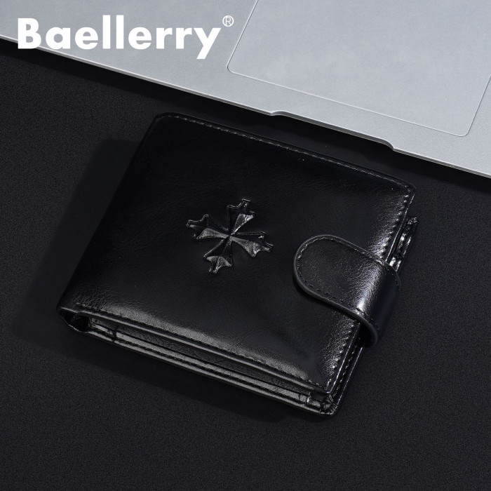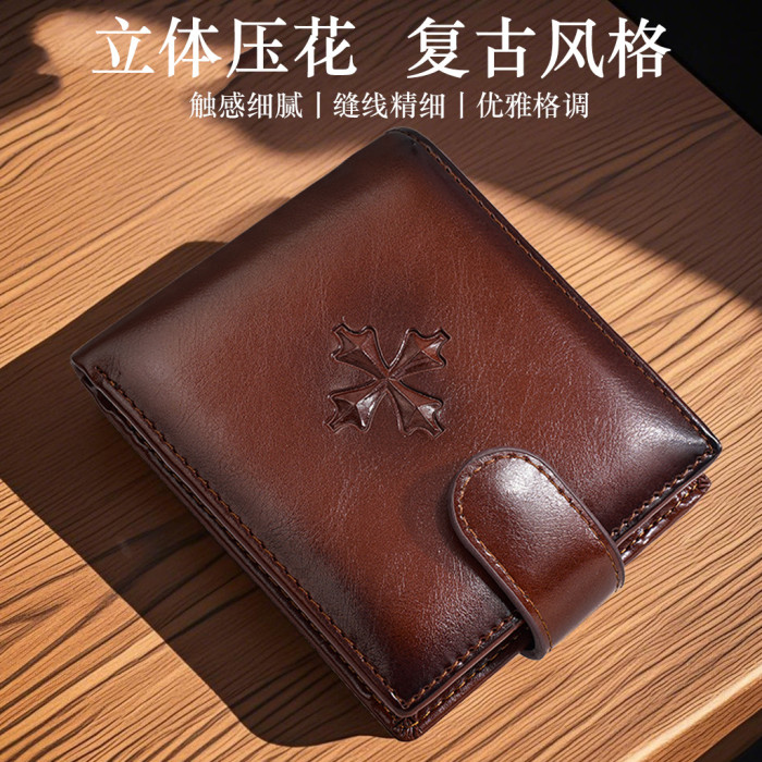 新款錢包男士短款男款高級感復古pu搭釦錢夾商務拉鍊小錢包男
